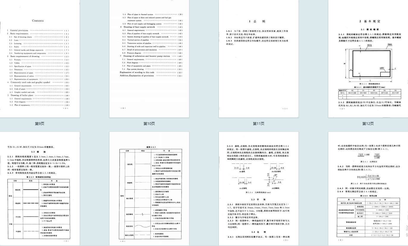 - 专项图样画法:涵盖锅炉房、供热管网、热力站及中继泵站三类核心场景,详细规定流程图、设备 / 管道布置图、系统图、纵 / 横剖面图等关键图样的绘制要求。