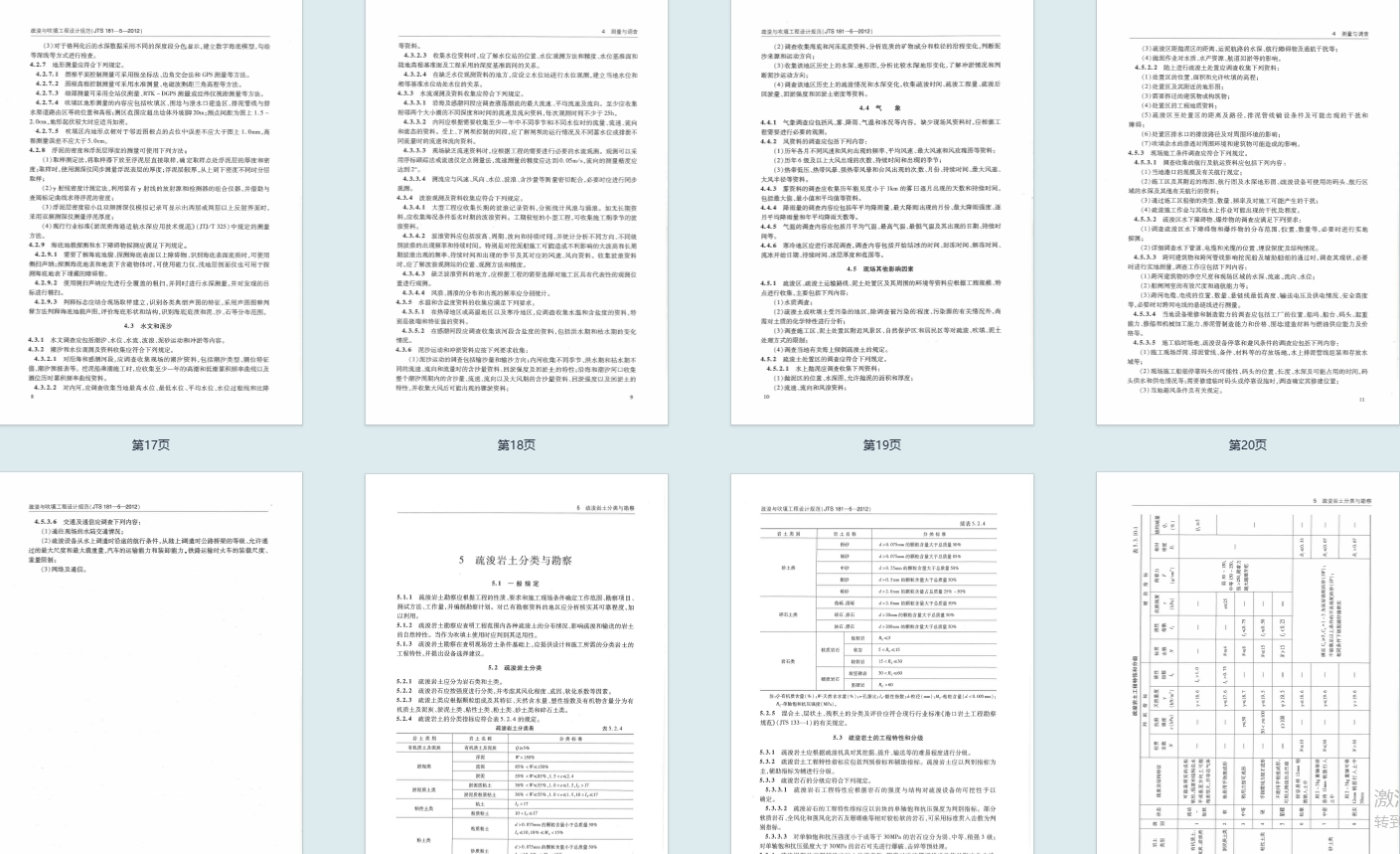 - 基础技术要求:明确疏浚岩土的分类与分级标准,按物理力学特性分为岩石类和土类,细化不同岩土的可挖性指标;规定工程测量与调查的内容,包括水深、地形、水文泥沙、气象等基础资料的获取要求。