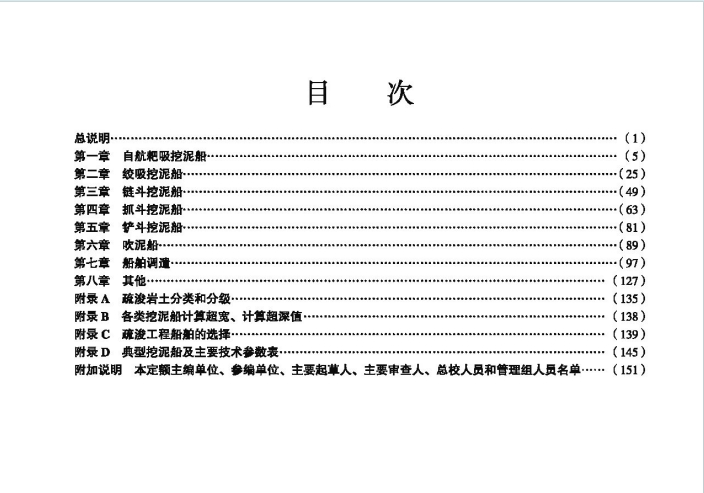 - 定额体系与覆盖范围:共 8 章 4 个附录,涵盖自航耙吸、绞吸、链斗、抓斗、铲斗、吹泥等 6 类挖泥船施工,以及船舶调遣、开工展布 / 收工集合、排泥管架架设拆除等配套工作,补充大型施工船舶及新工艺定额,适配现行设计规范。
