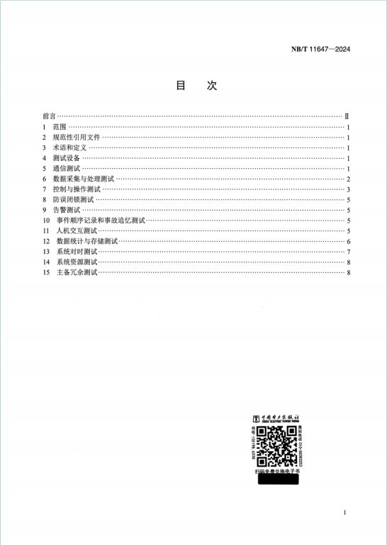 NB/T11647-2024《风电场监控系统测试技术规范》于 2024 年 9 月 24 日发布、2025 年 3 月 24 日实施,为首次发布,适用于风电场监控系统的出厂测试及现场模拟测试。