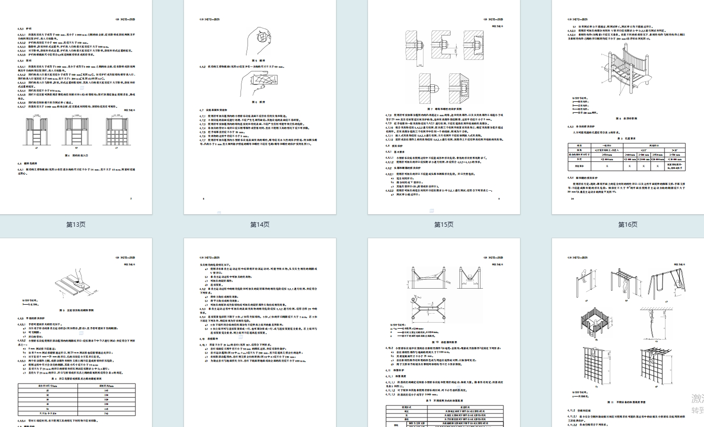 - 包含 4 个附录,提供使用者数量计算、结构完整性测试、挤夹和缠绕情形及测试方法等补充内容。