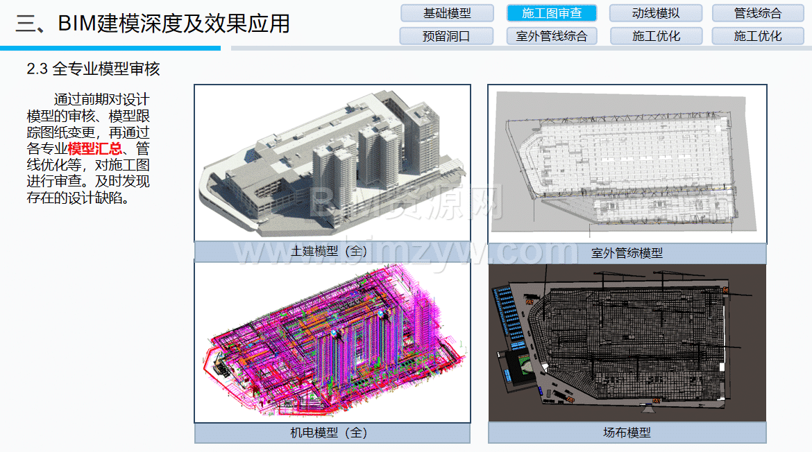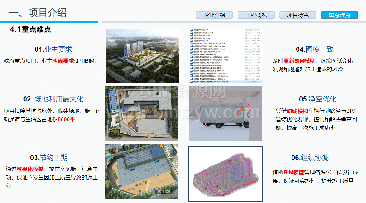 图纸审查与碰撞预控:建立建筑、结构、机电等全专业BIM模型,累计审查出设计问题200余项,发现碰撞点859个,提前与设计沟通优化,避免施工返工,仅碰撞问题处理就节约成本38.6万元。例如,通过模型发现地下室防火卷帘盒安装空间不足问题,及时推动设计变更,预留充足施工时间。