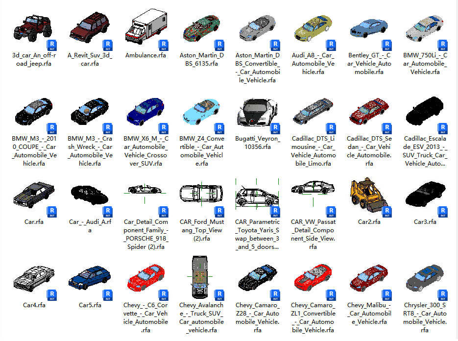 如果你的 Revit 项目需要展示设备与室外环境细节,添加高质量的车辆与设备族将是提升模型真实感的有效方式。合理布置汽车、卡车等元素,不仅能让周边场地更加直观,还能帮助业主和非专业用户快速理解设计方案。我们持续扩充并更新 Revit 设备与交通工具资源库,涵盖小汽车、桥车、皮卡车、跑车、大巴车、宝马车等多种类型,适用于从基础展示到复杂大型项目的不同需求。现在即可在BIM资源网下载 Revit 汽车族文件,快速完善模型细节,显著节省建模时间,提高项目表达效率。