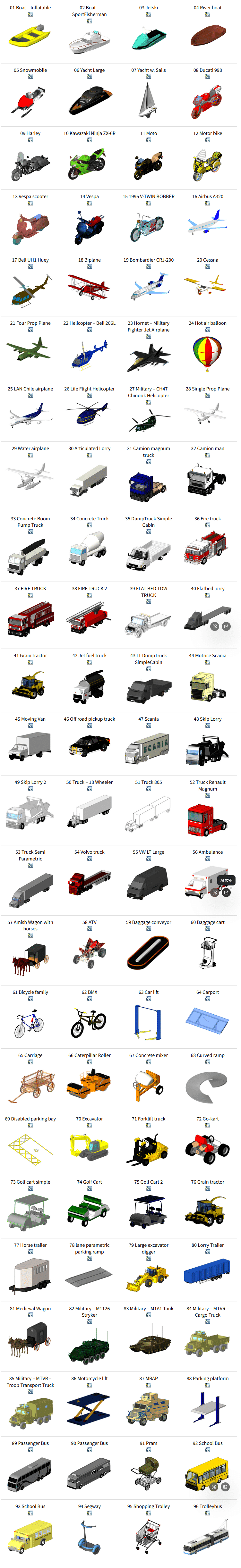 为满足不同类型项目的建模需求,本期BIM资源网给大家带来了 Revit 交通工具与设备族资源库,内容涵盖卡车、工程机械、船舶、飞机、摩托车等模型,适用于从概念方案到深化设计、成果展示等多个阶段。所有 Revit 载具族资源赞助用户均可免费下载与直接使用,能够显著减少重复建模工作,帮助BIMer高效完成场景搭建,提升整体建模效率与方案展示质量。