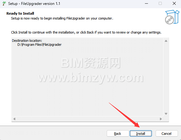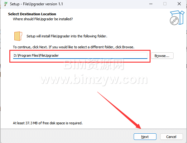2、在弹窗中选择Revit文件批量升级插件的安装位置,建议不要安装到C盘(系统盘),我这里安装的是D盘,然后点击Next