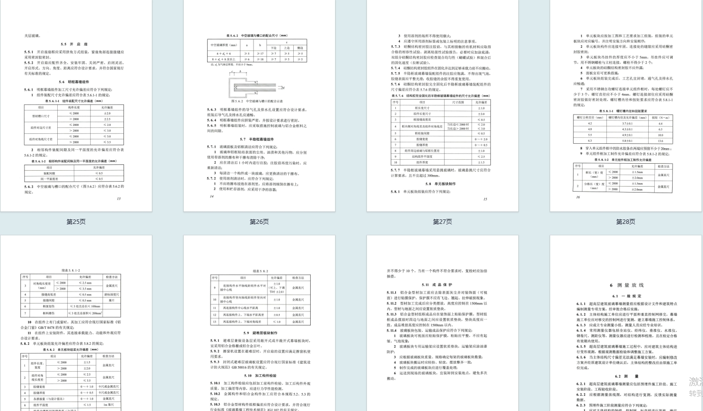 - 细化了构件加工精度、测量放线误差、幕墙安装流程及允许偏差,重点规范了吊装、注胶、防火封堵等关键工序。