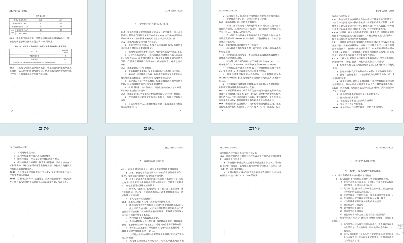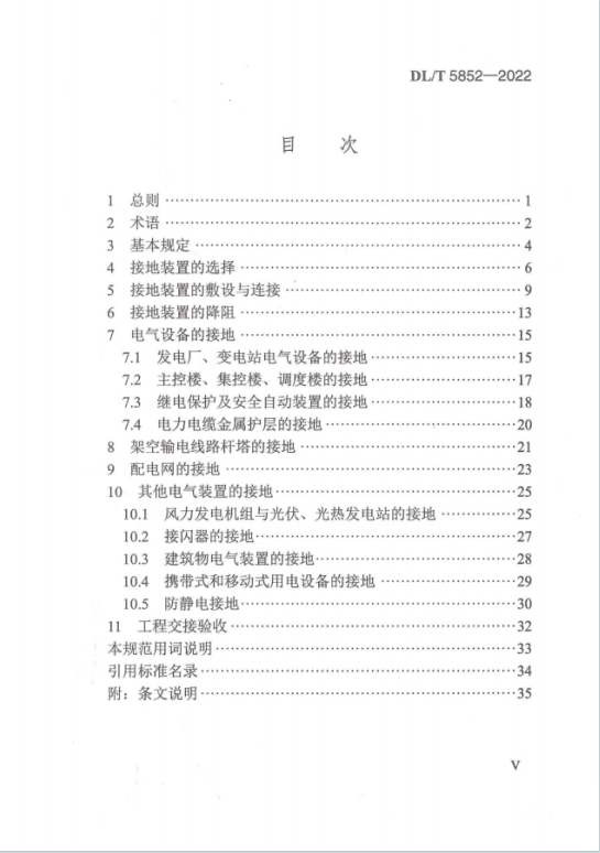 DL/T 5852-2022《电气装置安装工程接地装置施工及验收规范》于 2022 年 5 月 13 日发布、11 月 13 日实施,以 GB50169-2016 为基础编制,适用于电气装置安装工程接地装置的施工及验收。