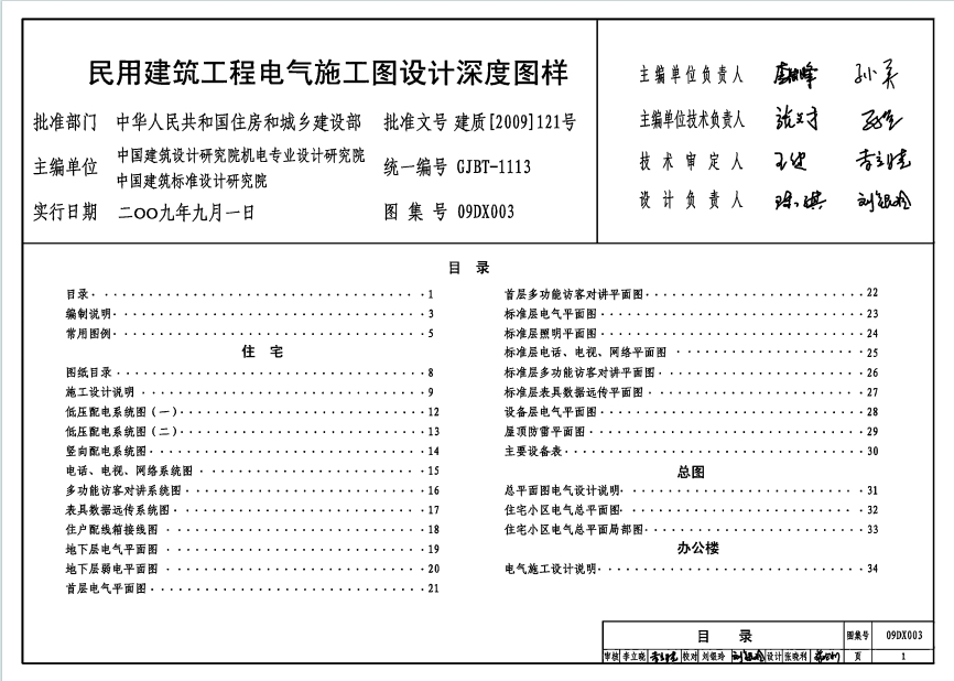 09DX003《民用建筑工程电气施工图设计深度图样》该图集是国家建筑标准设计图集 09DX003,由住房和城乡建设部批准,中国建筑设计研究院机电专业设计研究院等主编,2009 年 9 月 1 日实行。