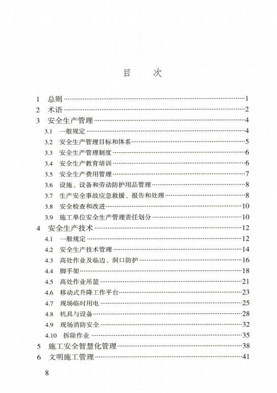 - 主要模块:包含总则、术语、安全生产管理、安全生产技术、施工安全智慧化管理、文明施工管理、卫生与职业健康 7 大核心部分。
