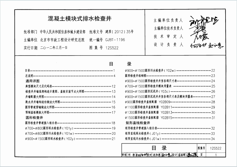2012 年 3 月 1 日实施的国家建筑标准设计图集,替代 05SS522,适用于市政及工业与民用建筑室外无内压排水管道的混凝土模块式排水检查井设计与施工。