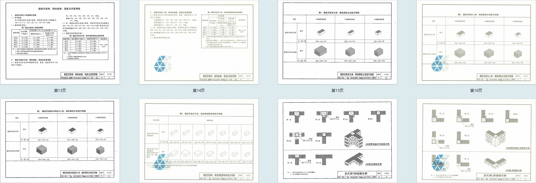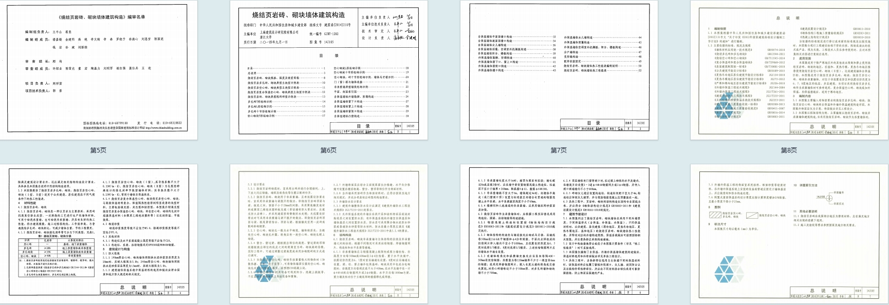 - 设计与构造要求:涵盖防火、防水、抗震相关设计,墙体组砌方式(T 形、L 形、十字形等),门窗框连接、配件安装固定等细节。