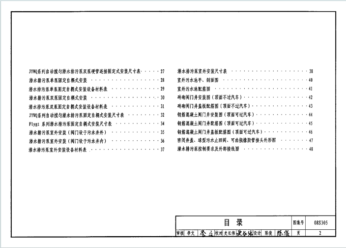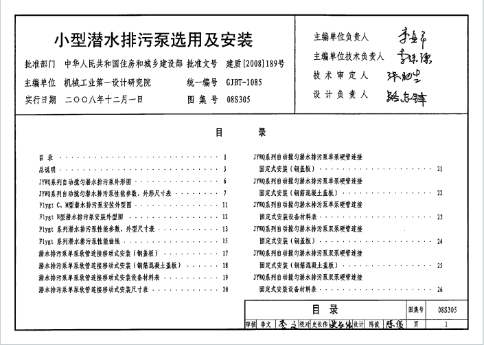 《08S305 小型潜水排污泵选用及安装》是住房和城乡建设部批准的国家建筑标准设计图集,2008 年 12 月 1 日起实行,替代旧版图集。