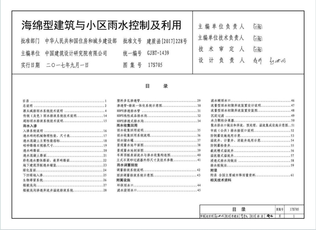 海绵城市建设系列国家建筑标准设计图集,2017 年 9 月 1 日实行,替代 10SS705《雨水综合利用》。