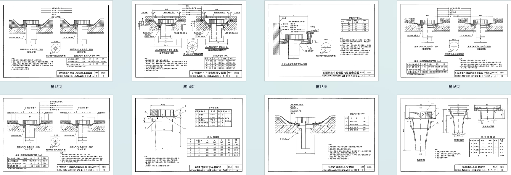 - 重力流类:87 型及改进型、65 型雨水斗,含不同材质短管、导流罩等零件,配套多种屋面安装方式。