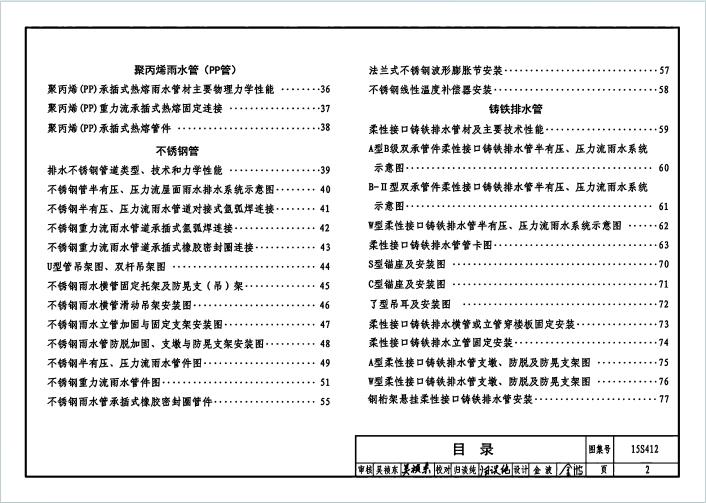 - 包含管道布置与敷设、集水沟与雨水斗及溢流设施、管道支吊架设置、施工安装流程、验收及维护等方面的要求和图示。
