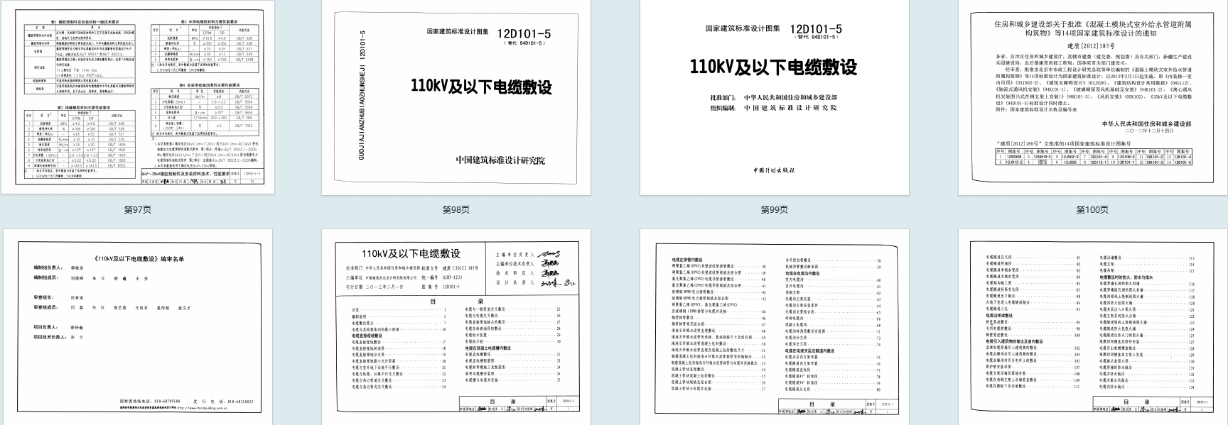 | 12D101-5 | 110kV 及以下电缆敷设 | 直埋、排管、电缆沟、隧道、桥架、竖井等多种敷设方式的设计与施工要点,含路径选择、保护措施、弯曲半径等 |