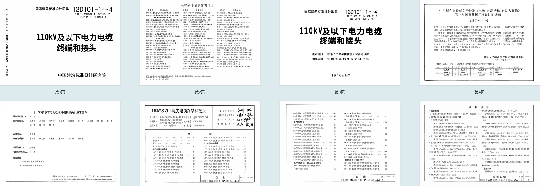 | 13D101-1~4 | 110kV 及以下电力电缆终端和接头 | 涵盖热收缩、冷收缩、预制等多种类型终端与接头的制作安装,包括户内 / 户外、不同电压等级 (0.6/1kV~64/110kV) |