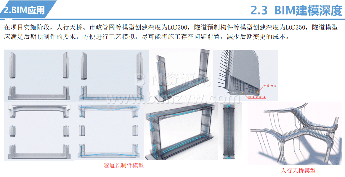建模过程中,根据不同构件需求设定差异化建模深度:人行天桥、市政管网等模型深度为 LOD300,隧道预制构件模型深度达 LOD350,满足预制件生产、施工吊装模拟等高精度需求,提前规避施工潜在问题。
