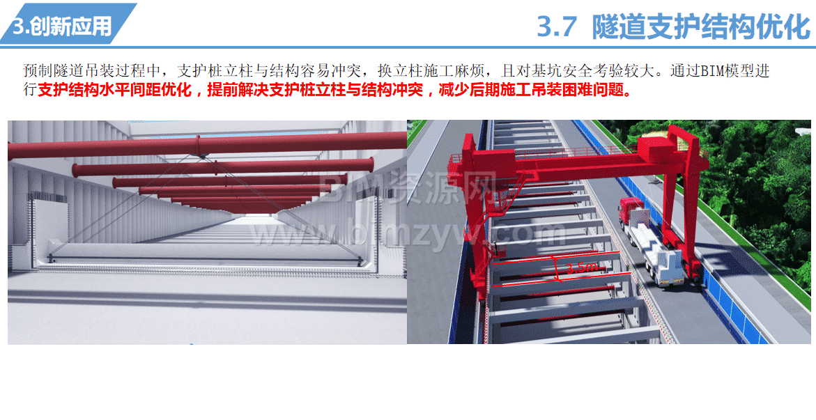 针对预制隧道吊装过程中支护桩立柱与结构易冲突的问题,通过 BIM 模型优化支护结构水平间距,提前规避施工风险,降低吊装难度,保障基坑安全。