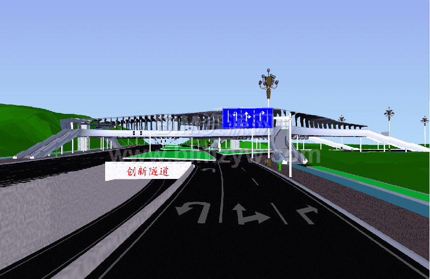 工程涵盖道路、桥梁、隧道、交通疏解、给排水、照明等多个专业领域。开创大道为城市主干路,主线设计车速 60km/h,辅道设计车速 40km/h,人行天桥最大跨径达 35m,雨水渠箱最大尺寸为 6500mm×1800mm,污水管径最大为 d800。