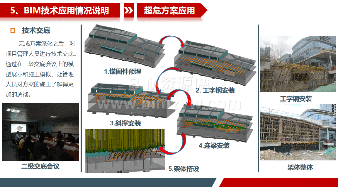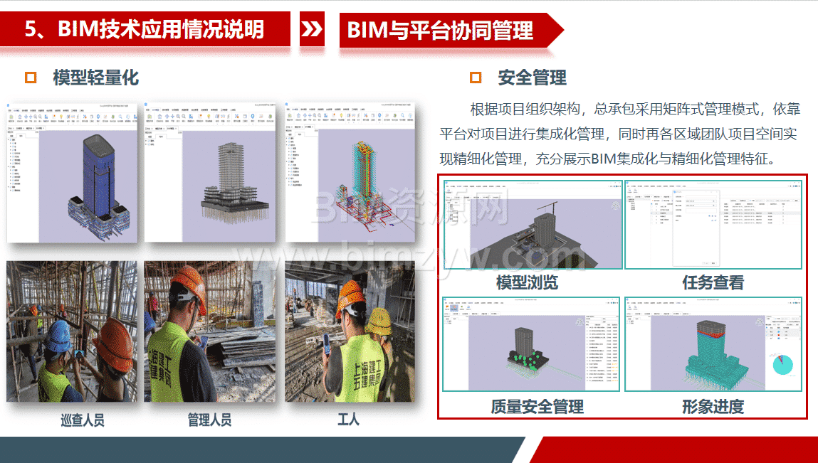 在协同管理方面,项目搭建 EveryBIM 协同平台,实现模型轻量化、进度管控、现场问题闭环管理等功能,完成 32 次三维技术交底与 23 次 AR 验收,大幅提升沟通效率。同时沉淀了丰富的 BIM 学习资料,包括标准化建模流程、超危方案模拟教程、协同管理规范等,为同类商业综合体项目提供了可复制的 BIM 应用经验。