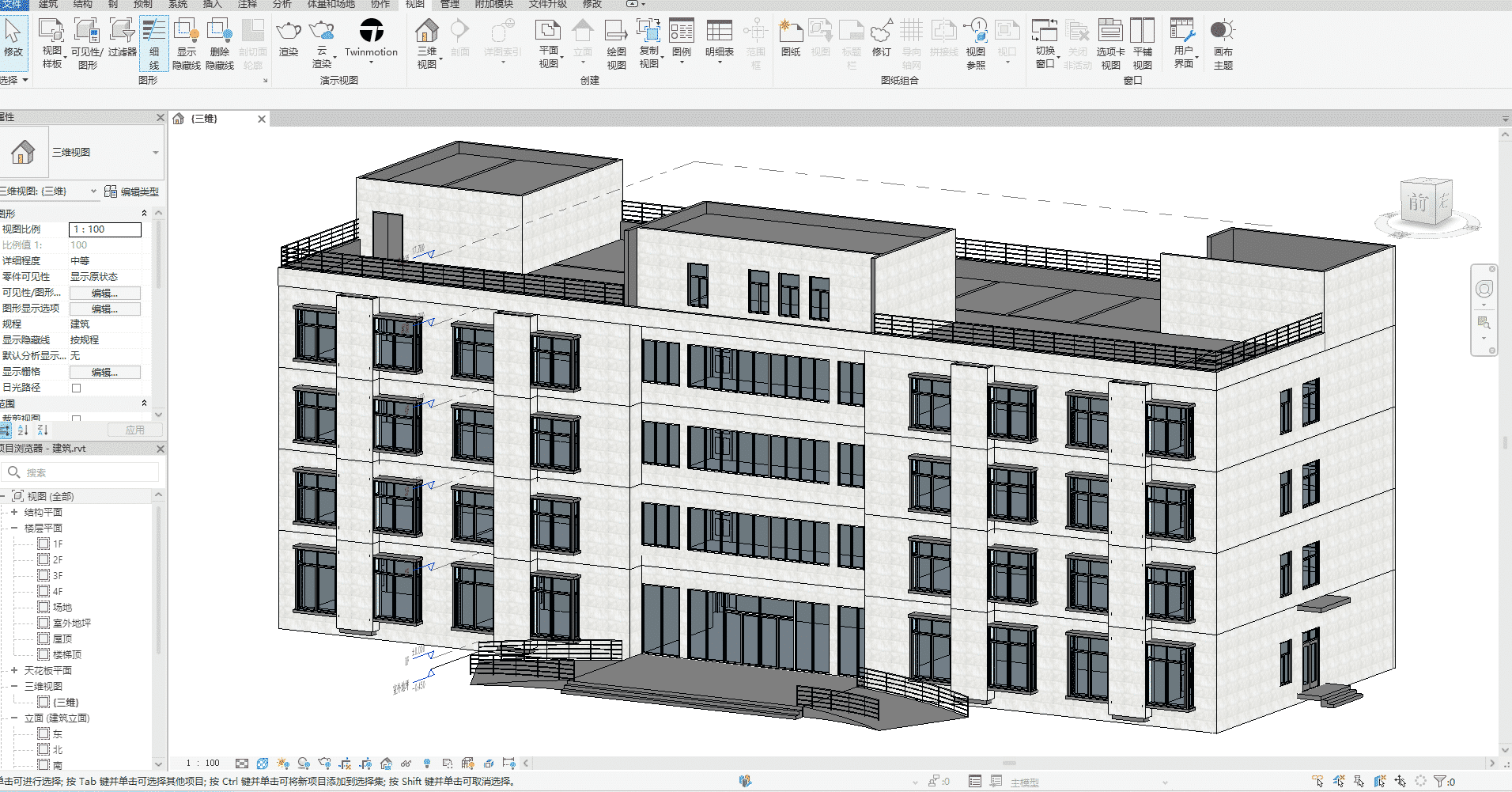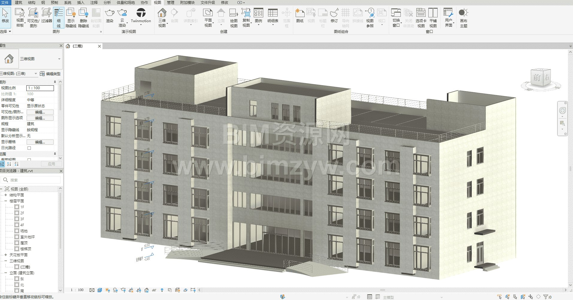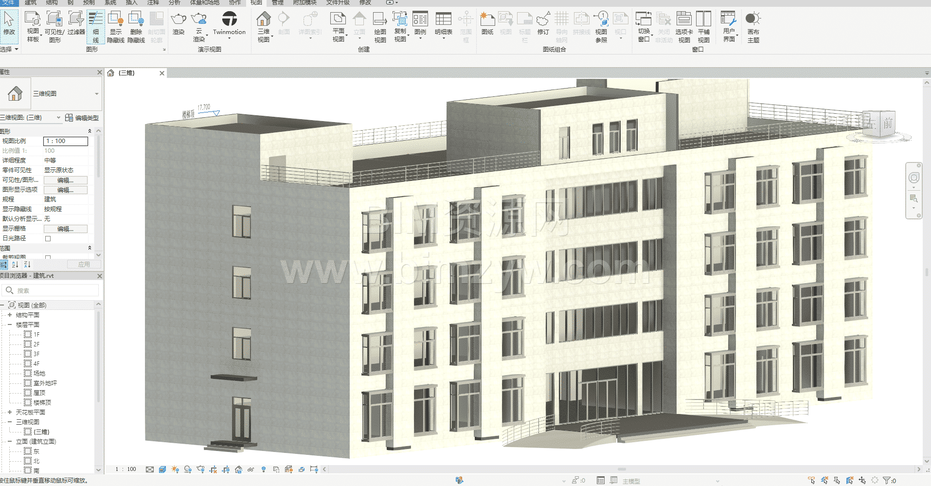 这是一套完整交付的四层建筑 BIM 模型成品资料,不仅包含了高精度的三维模型主体,还配套整理齐全了建模过程中所需的建筑施工图、平立剖图纸等全套基础资料。整套资料的搭建逻辑清晰、层级规范,模型构建难度整体适中,没有复杂的异形结构或高难度参数化设置,非常适合 BIM 初学者作为入门练手的优质素材,既能帮助新手熟练掌握软件操作流程,又能通过完整项目流程提升空间理解与建模思维。