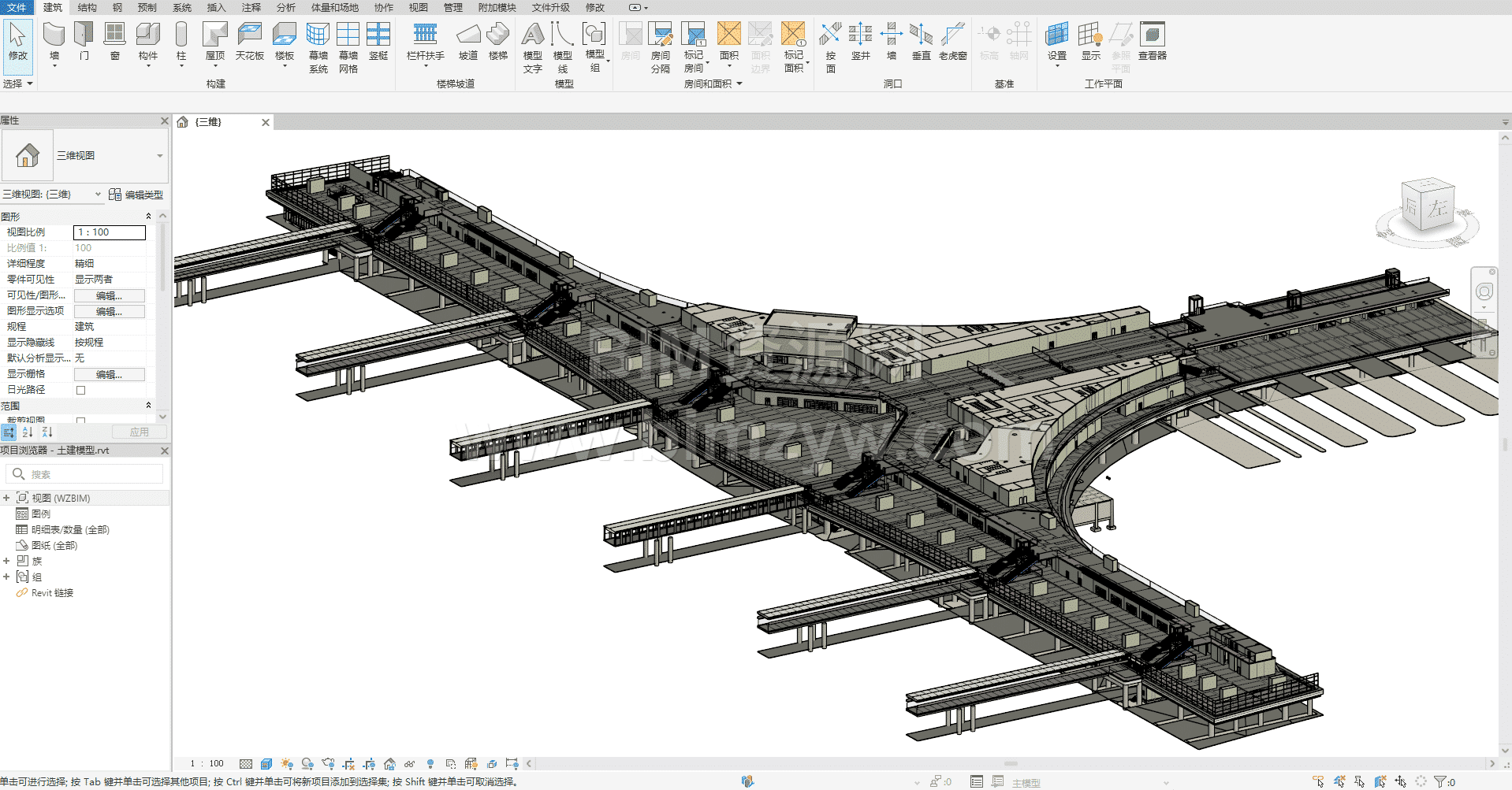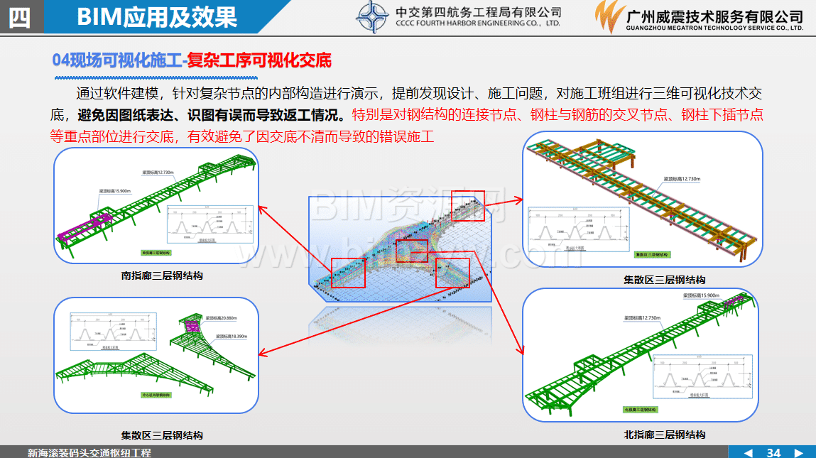 针对项目体量大、异形构件多、传统二维协同效率低等难点,项目团队构建了覆盖建筑、结构、机电、幕墙、钢结构等专业的BIM管理体系,并结合Revit、Navisworks、Rhino、Tekla、Lumion及广联达BIM5D等工具,推动BIM技术贯穿施工建设全生命周期。通过模型搭建、专业集成和持续完善,BIM不仅支撑了施工阶段管理,也为后续竣工交付和运维应用打下了数字基础。