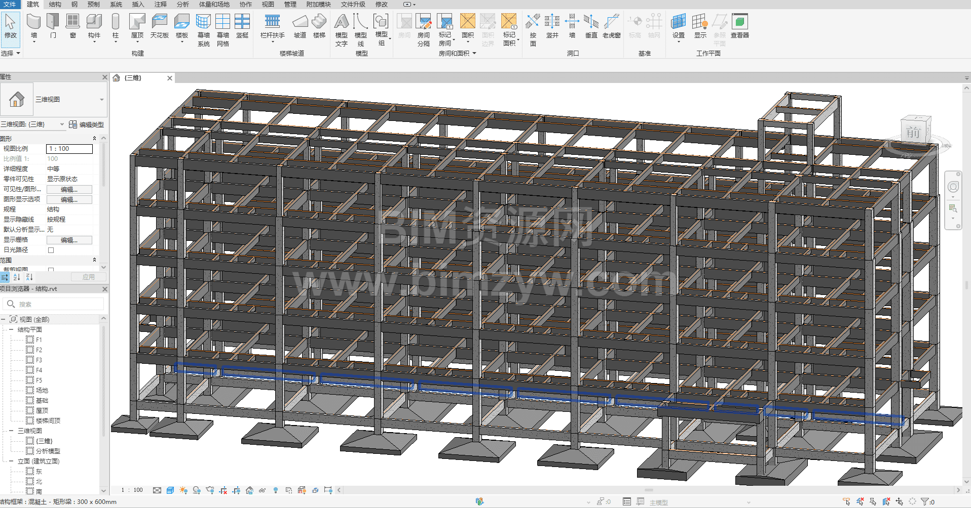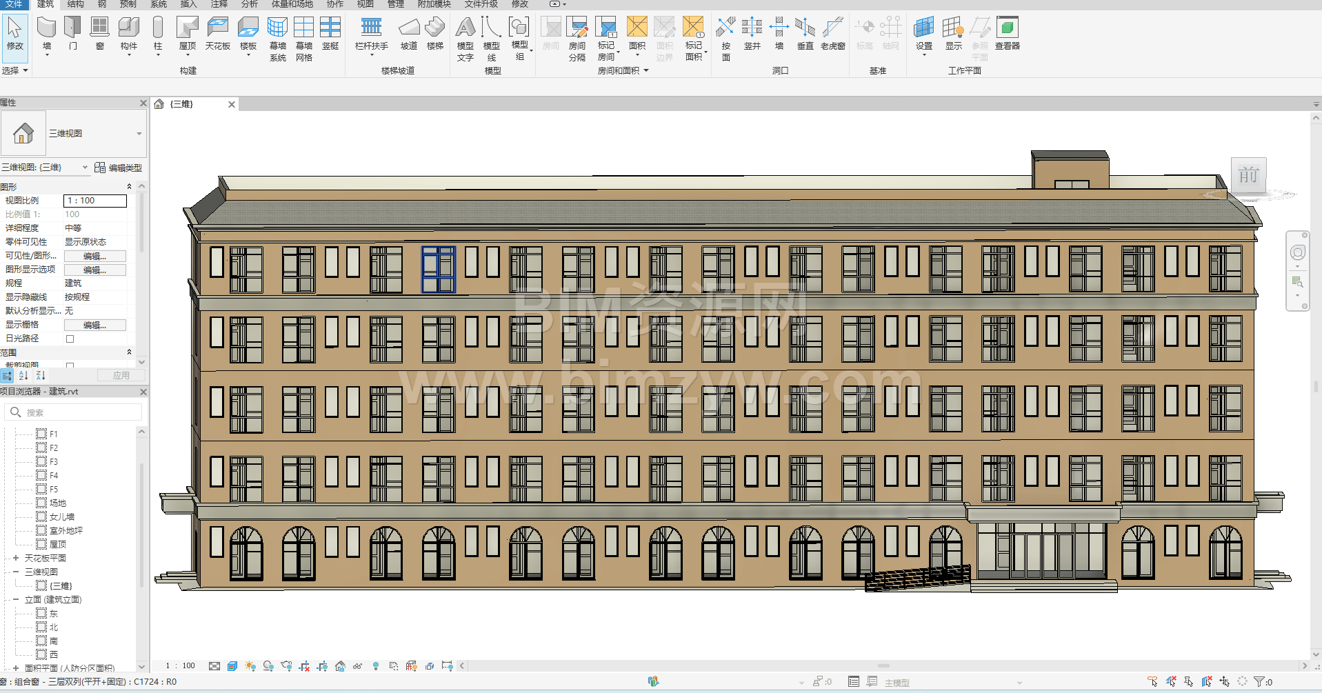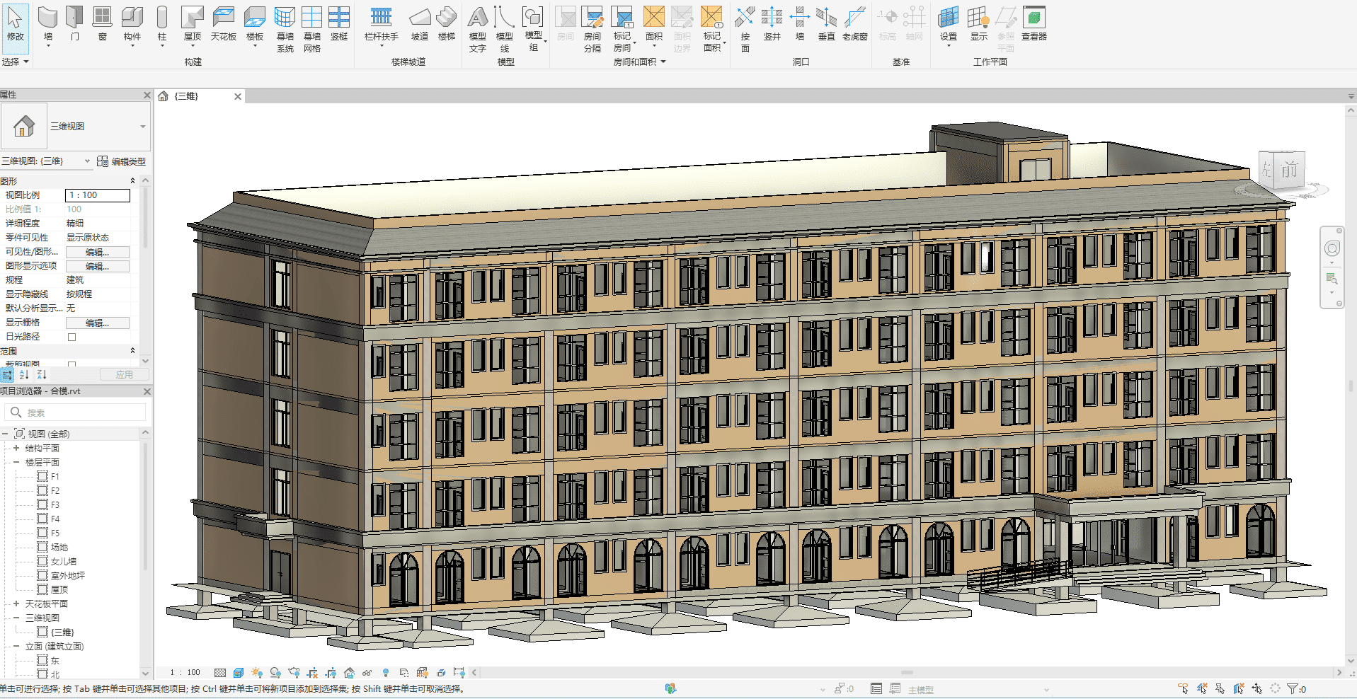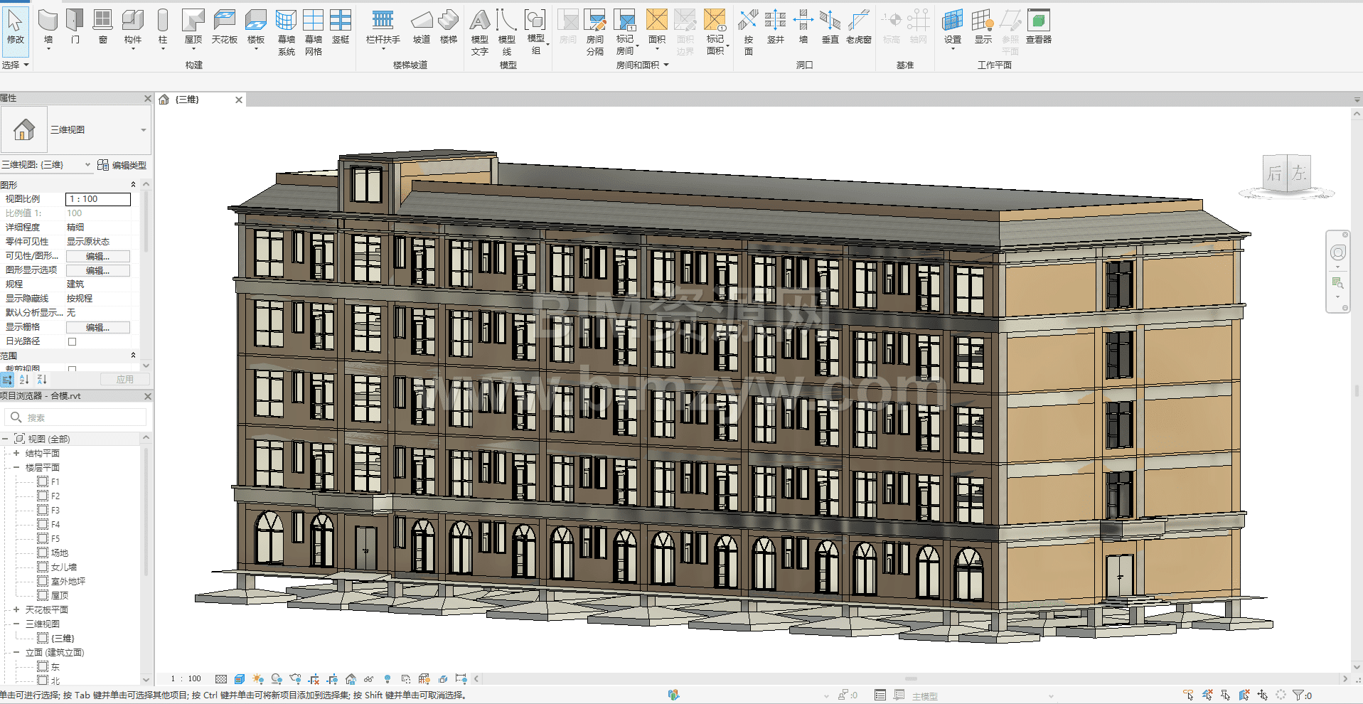 本宿舍楼项目建筑面积为 5052.48 平方米,共设五层,结构形式采用框架结构。该宿舍楼项目的 BIM 成品模型(含建筑、结构专业)及配套 Revit 建模 CAD 图纸,均由 BIM 资源网独家提供下载服务。