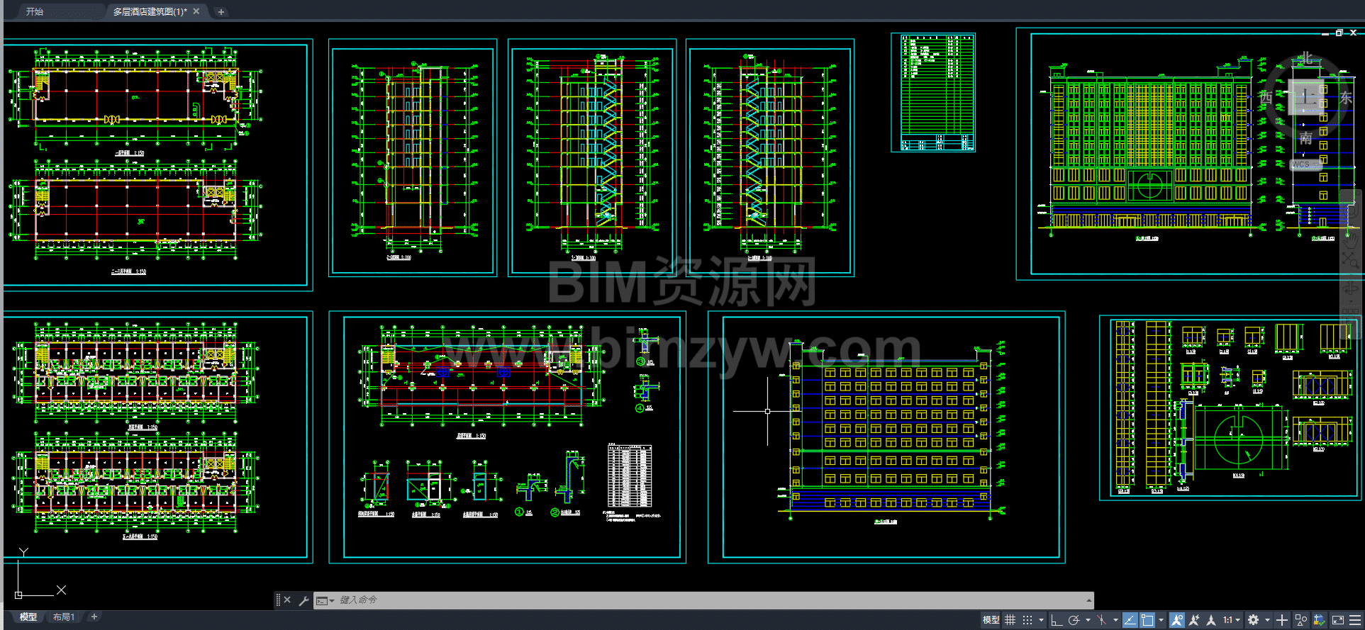 九层酒店BIM建筑模型成品配套全套完整CAD图纸,图纸规范标准、标注清晰详尽,包含建筑平面、立面、剖面图纸,覆盖酒店建筑设计全流程所需图纸。