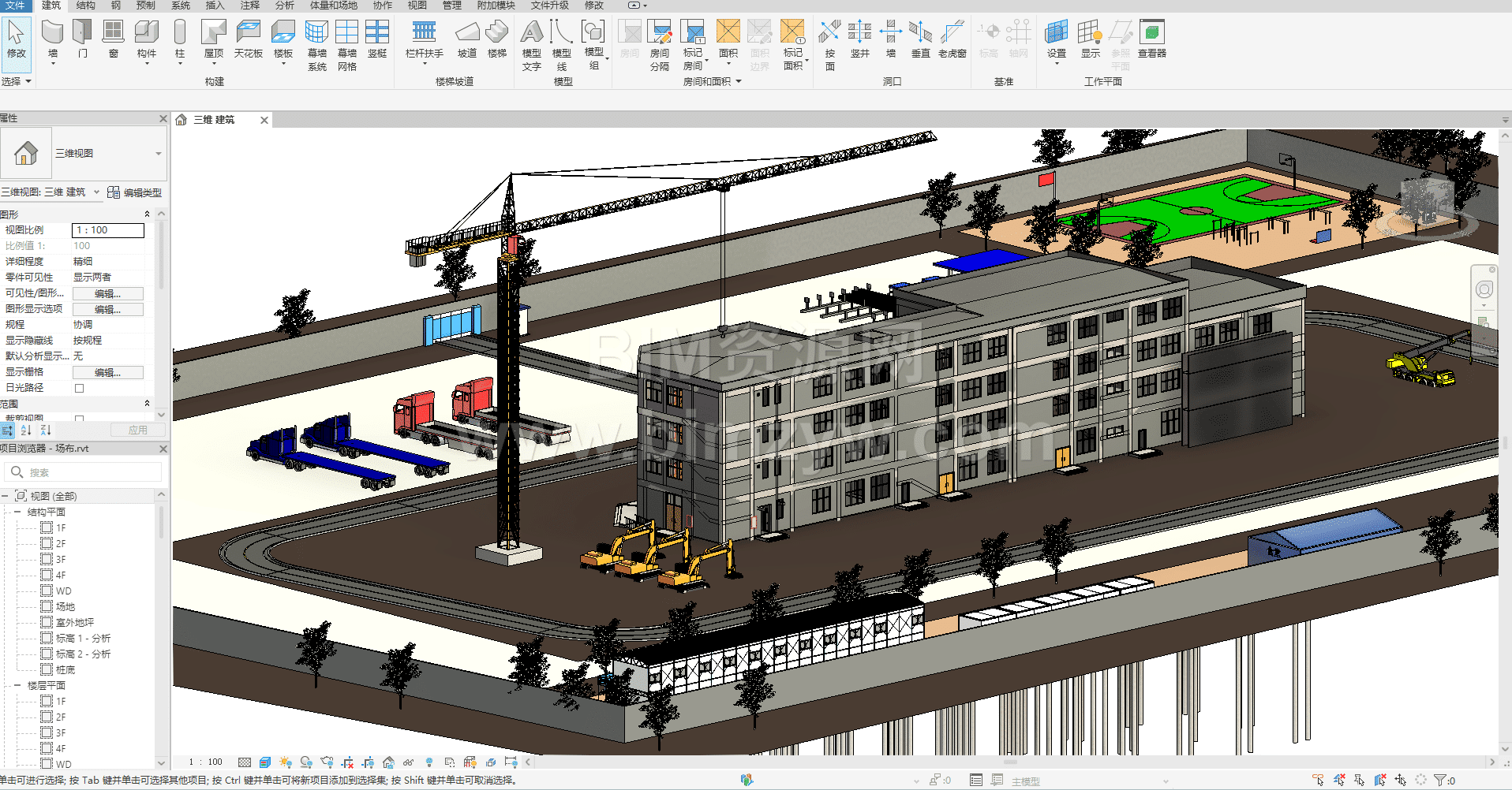 本套资源为某真实商场施工期BIM模型成品,整体为4层商场建筑,严格贴合实际商场施工场景与行业规范,全方位还原施工期的核心细节,不仅包含完整的Revit建筑模型与结构模型,更涵盖专业的施工期场地布置内容,精准还原施工区域划分、材料堆放区、临时设施布置、施工道路规划等关键场景,贴合商业化项目施工期的实际需求,细节打磨到位、建模精度达标。