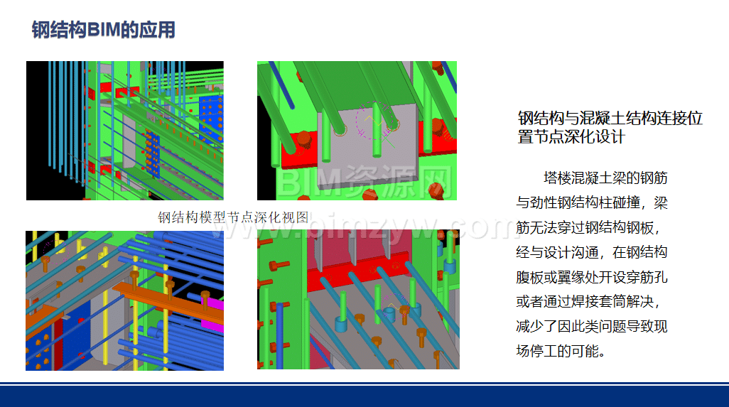 项目组建专业 BIM 团队,配置 Revit、Navisworks、Fuzor 等专业软件与高性能工作站、VR 设备,构建LOD400 施工模型、LOD500 竣工模型,实现建筑、结构、机电、幕墙、钢结构全专业协同。通过 BIM 技术,项目完成697 处碰撞优化、出具深化图纸 316 张,提前解决基坑支护与结构冲突、机电管线打架、钢结构与钢筋碰撞等问题。在幕墙预拼装、节点深化、净高分析、工程量精准统计、VR 安全交底、智慧平台管理等方面全面落地,有效减少返工、节约成本、缩短工期。同时,项目依托自主研发 BIM 计算工具与一体化管理平台,实现进度、质量、安全、劳务、资料数字化管控,为超高层施工提供全周期技术支撑。